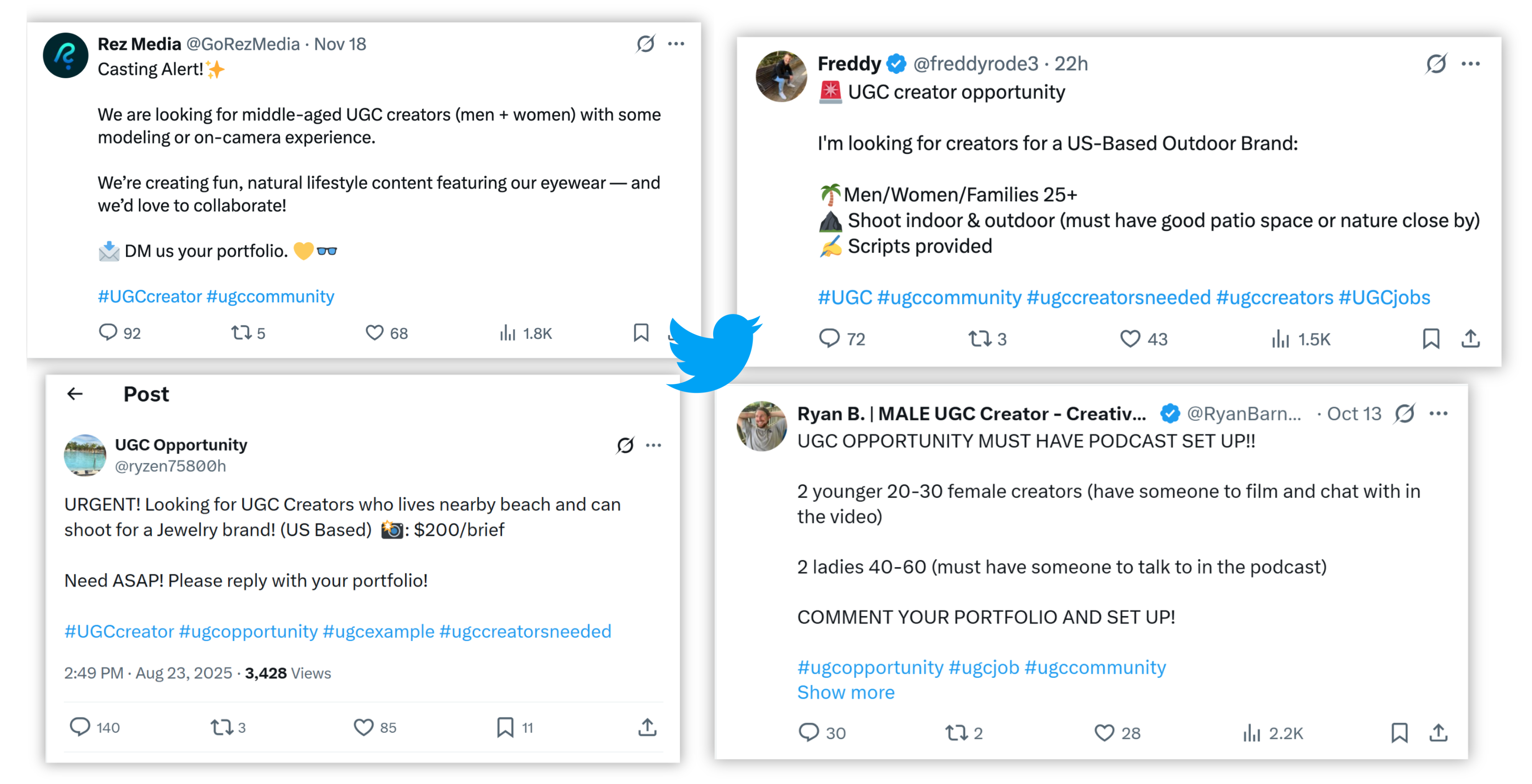 A UGC creator who's either not on Twitter or has a dead profile—and you're watching other creators get flooded with inbounds while you're leaving money on the table.