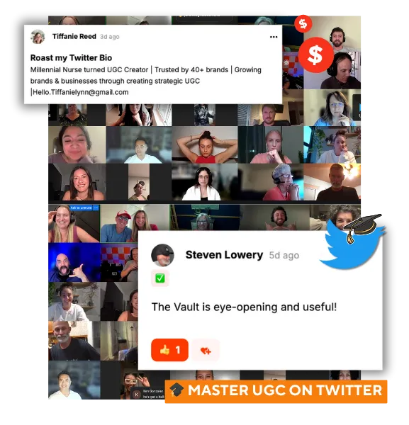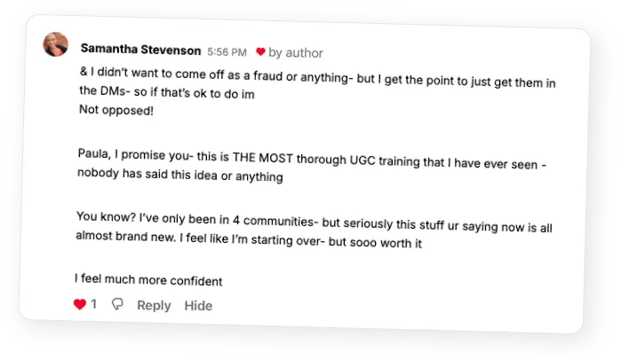 Or you could get the exact system that's worked for me and hundreds of other UGC creators 5 courses, 300+ templates, live coaching, and a community that want to hit $5k months.