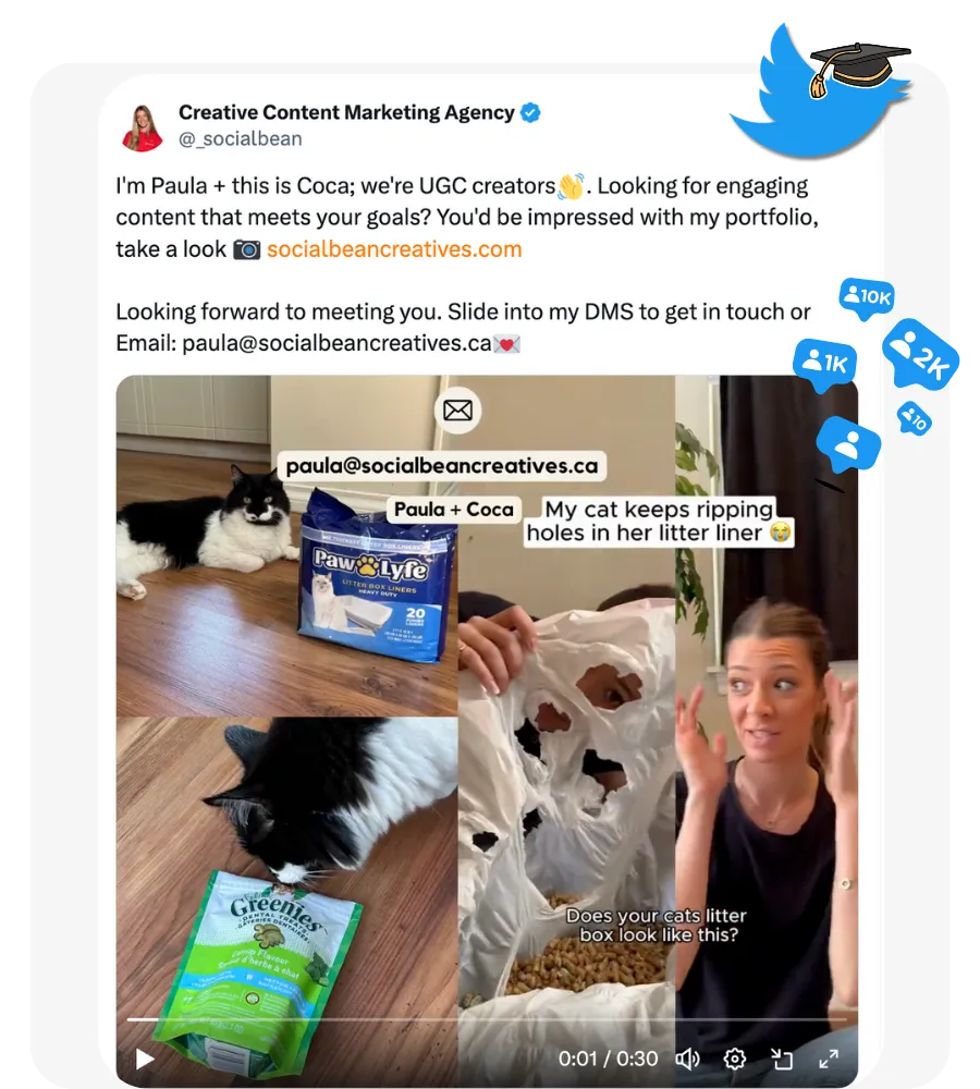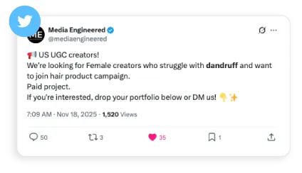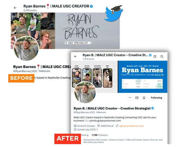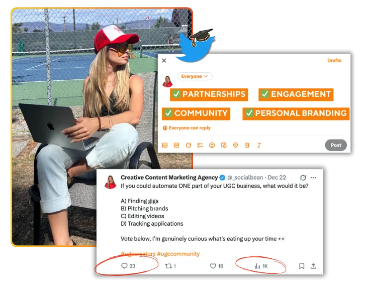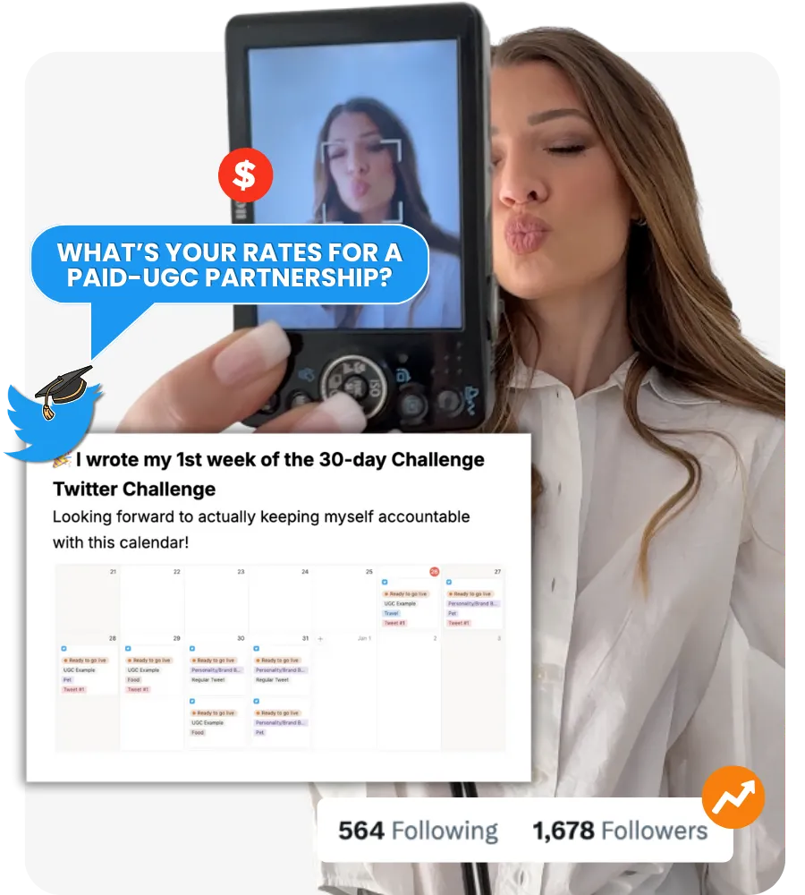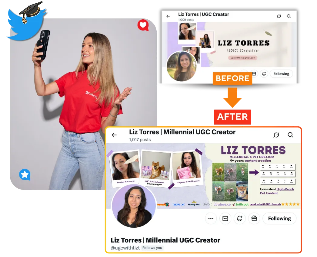 Set up and optimize your Twitter completely so brands instantly know you're a professional UGC creator worth DMing. You’ll have absolutely everything you need to look credible, searchable, and hire-ready.